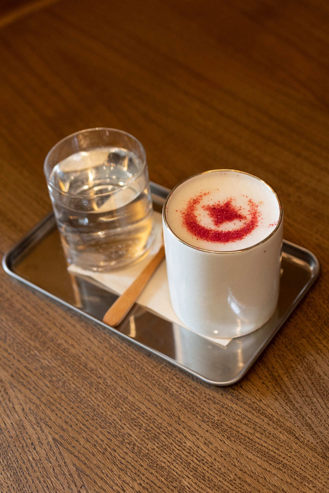 Coffee author's drink is all about the bright combination of milky creamy texture and crisp sour raspberries on top