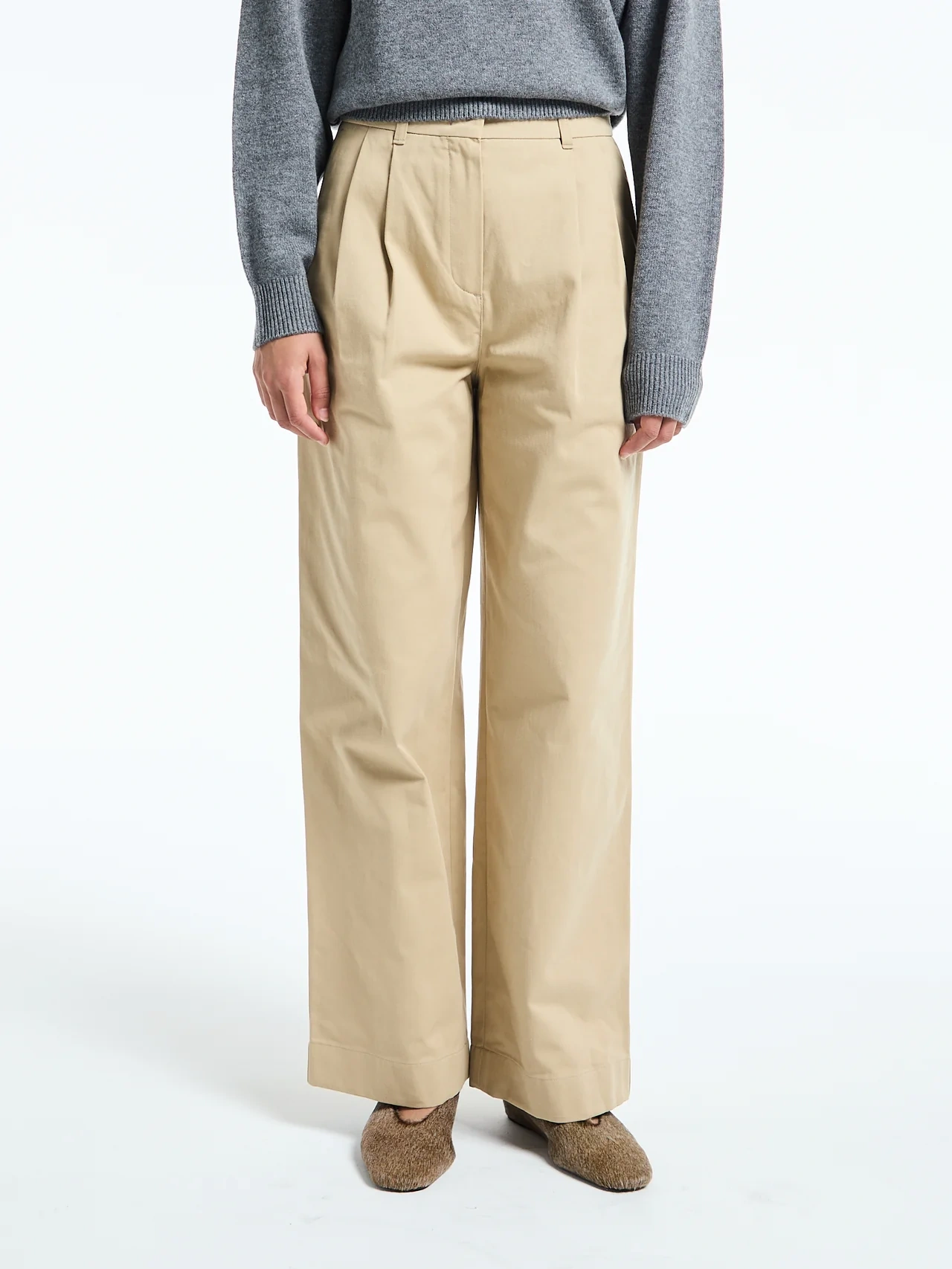 DOUBLE PLEATED CHINO SLACKS BEIGE