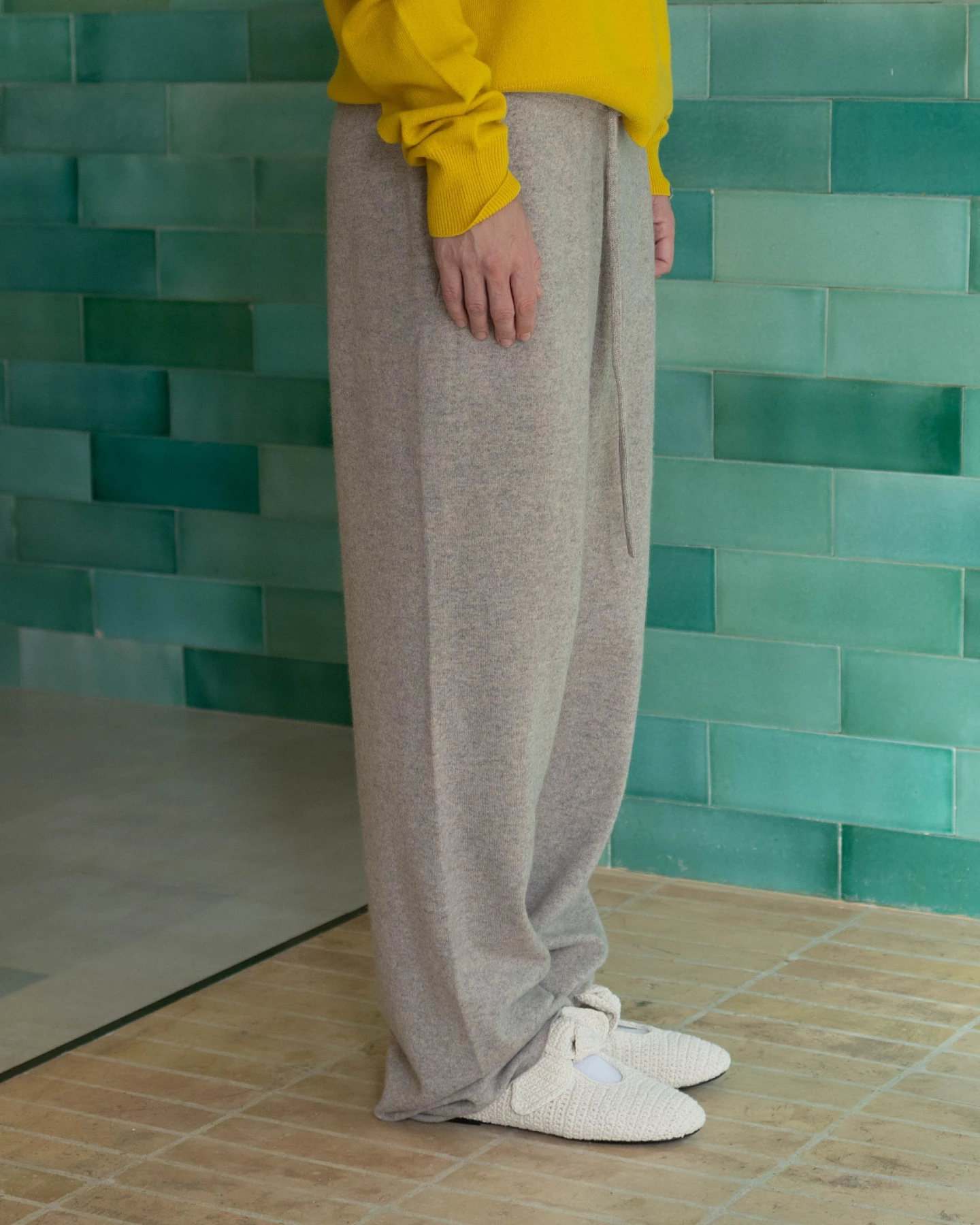 The N°142 Run pants are the most luxury version of lounge pants extreme cashmere could think of. Knitted from a super soft cashmere blend yarn, enriched with elastane for ultimate shape retention. The comfy, elasticated drawstring waistband, the extra-long straight legs: there is nothing that limits your freedom of movement. Luxury comfort for indoors, gorgeous enough for outdoors. Suitable for xs – l bodies. Unisex.