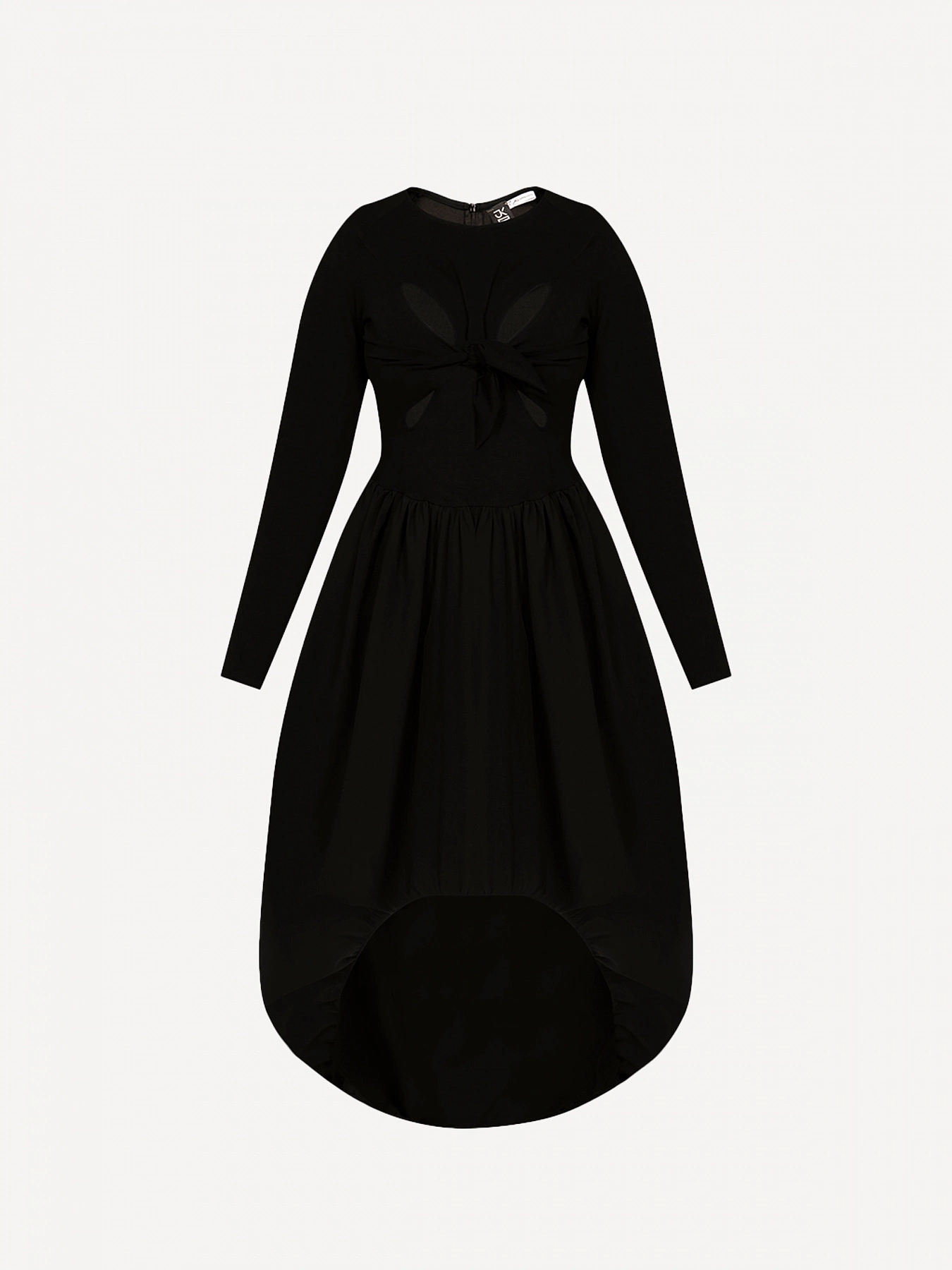Concealed zip closure at back. Cutout with self-tie fastening at chest.