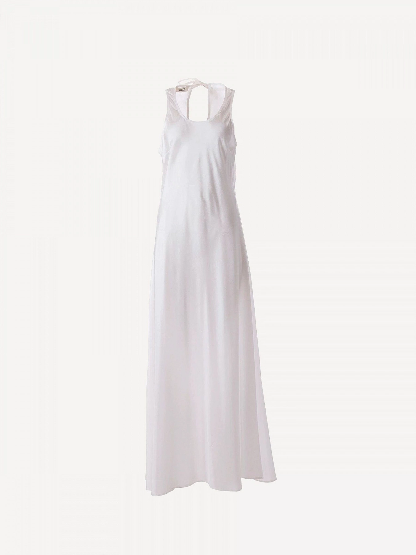 Acetate satin dress with self-tie straps at open back. Unlined. Ideal pairs with Cherine dress.