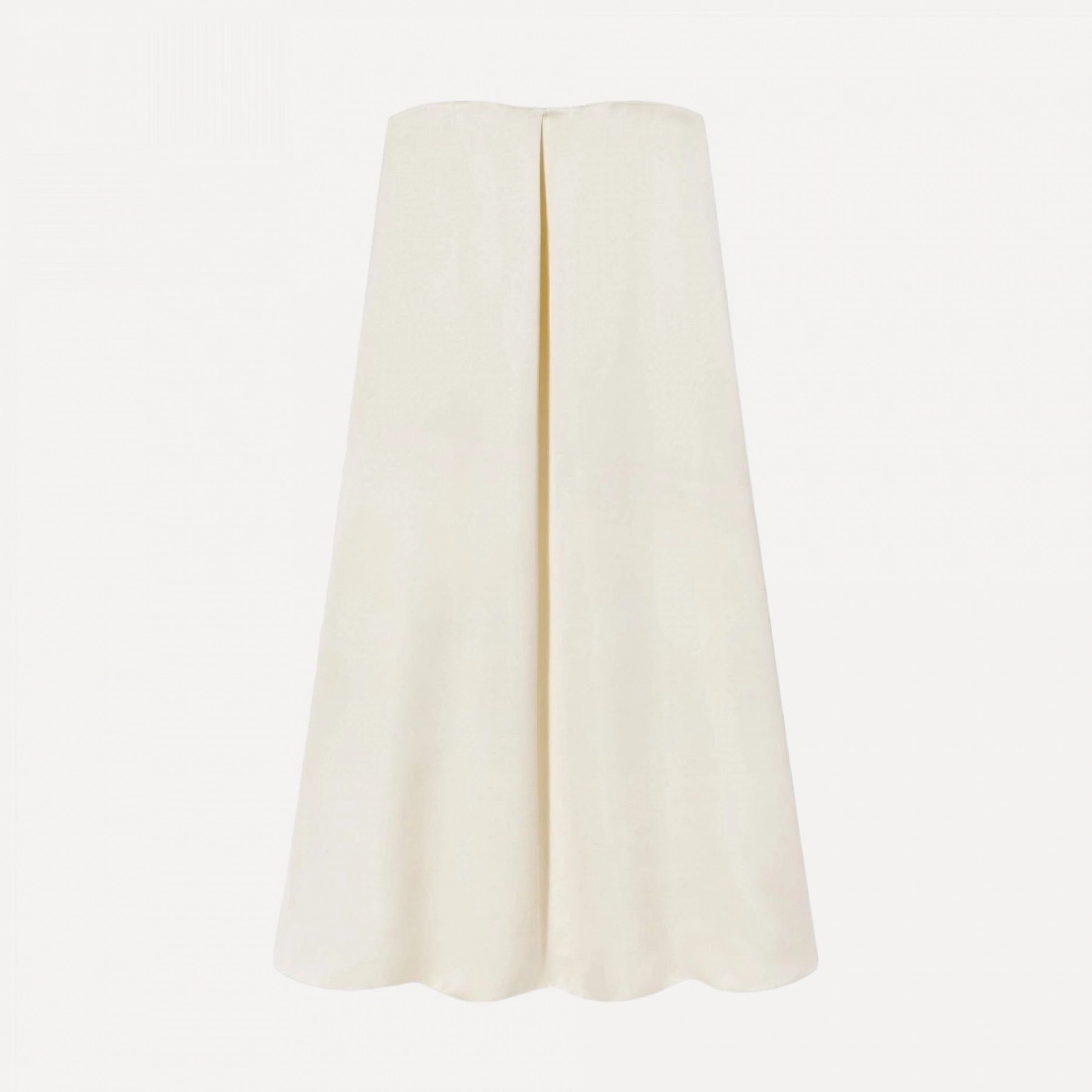 Butter-coloured bustier dress from CO in a loose fit and midi length. It has a sewn-in corset top and is covered with silicone stitching on the top, so that the dress will not fall down.