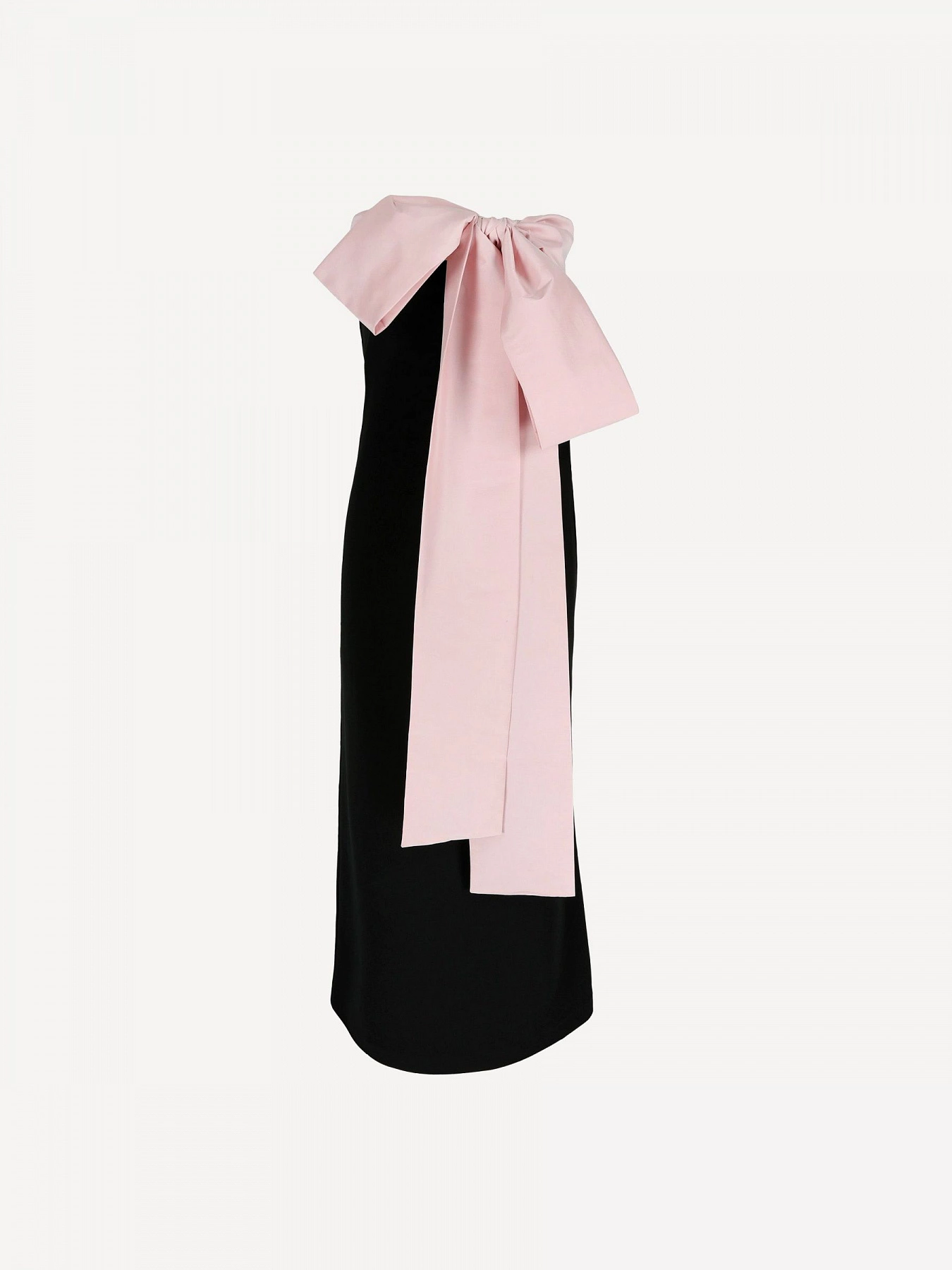 BERNADETTE introduces the Bart dress, featuring a bias-cut that enhances its graceful silhouette. The smooth crepe fabric lends a luxurious feel, while the dress drapes elegantly over the body. The finishing touch is the iconic BERNADETTE bow, adding a touch of playfulness. The Bart dress knows how to make an entrance at any party.