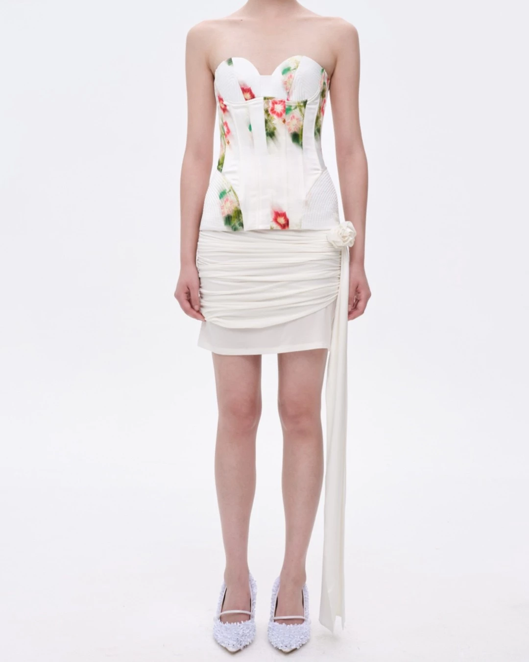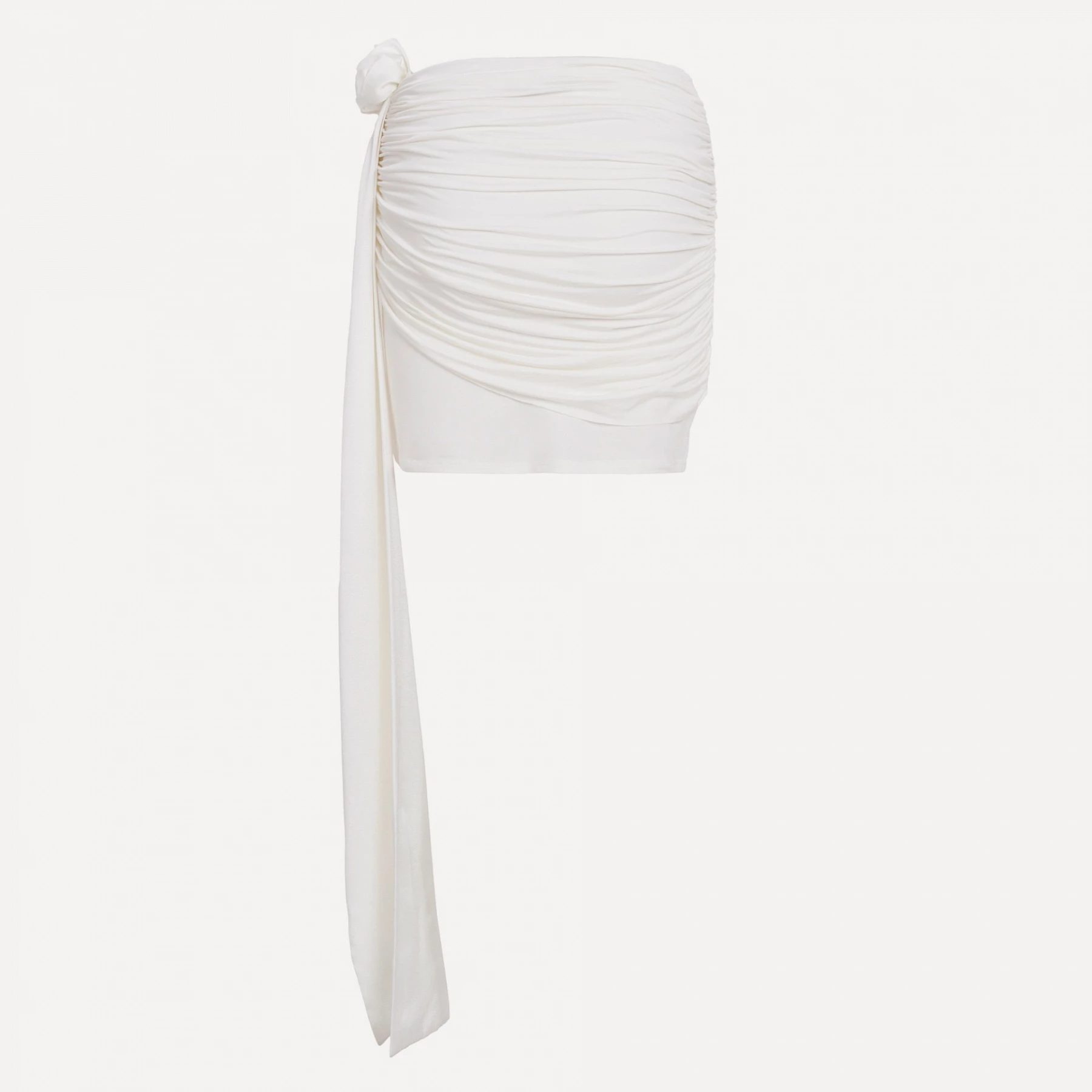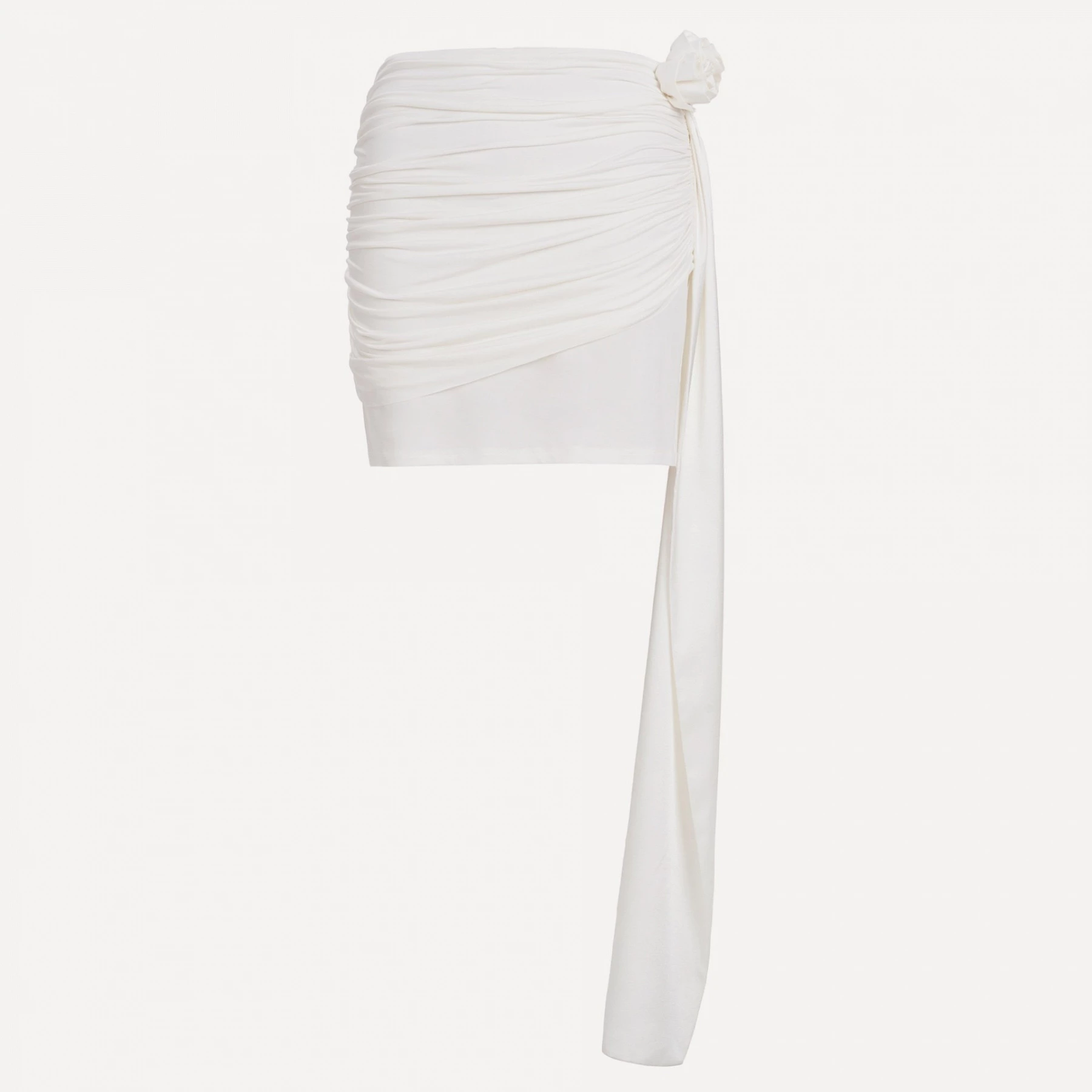 White Twisted Jersey Mini Skirt with Rose Ribbon