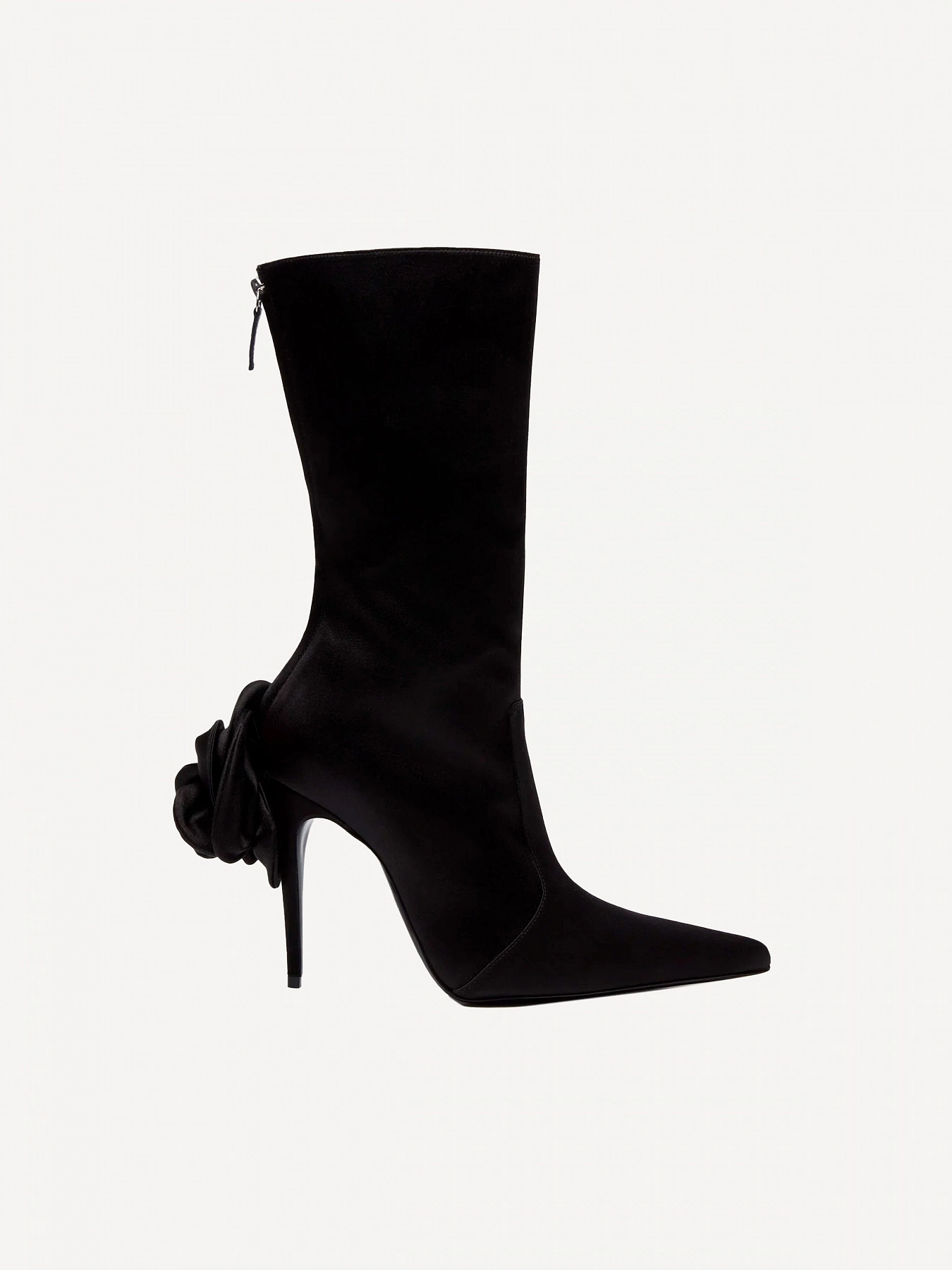 MAGDA BUTRYM SHARP POINTED FLOWER BOOTS SATIN BLACK
