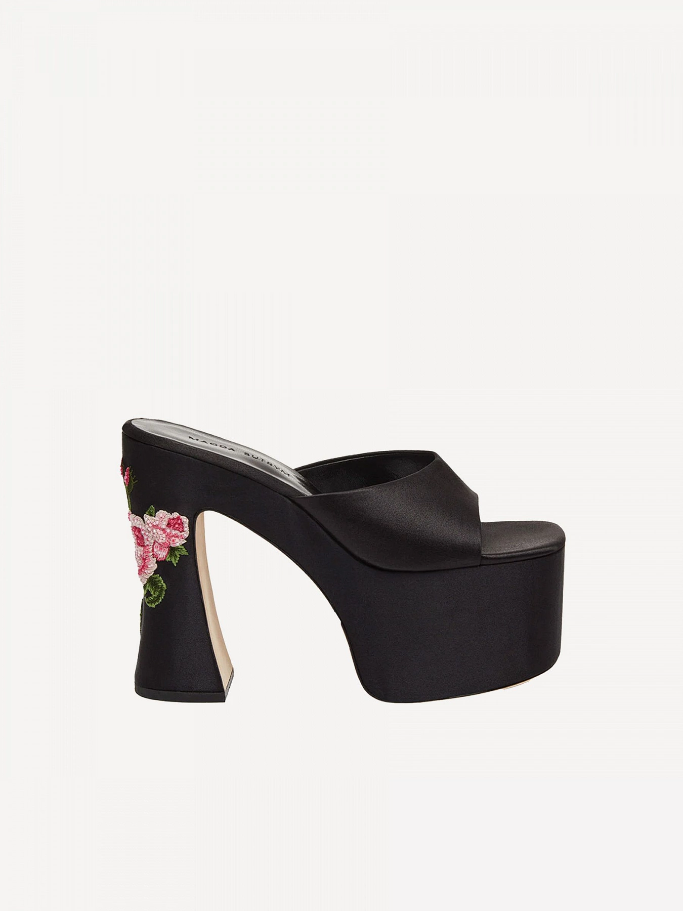 MAGDA BUTRYM PLATFORM MULE BLACK SATIN EMBROIDERED