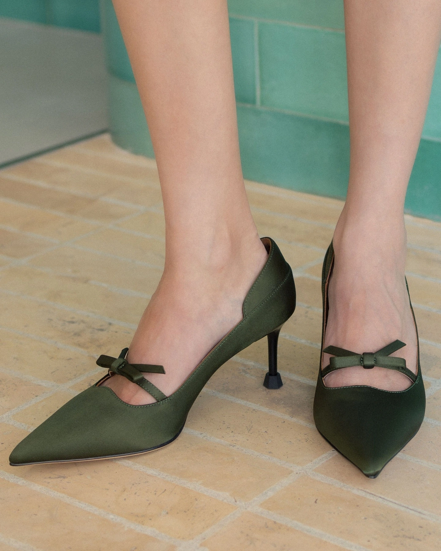 Side Bow Square Toe High Heels