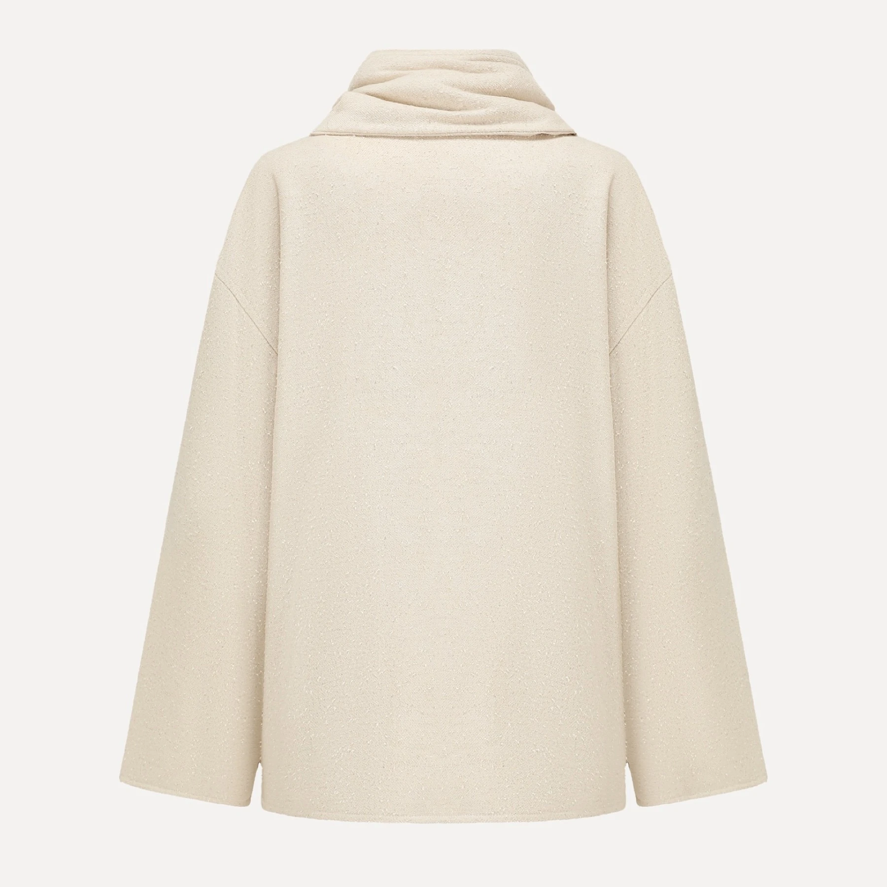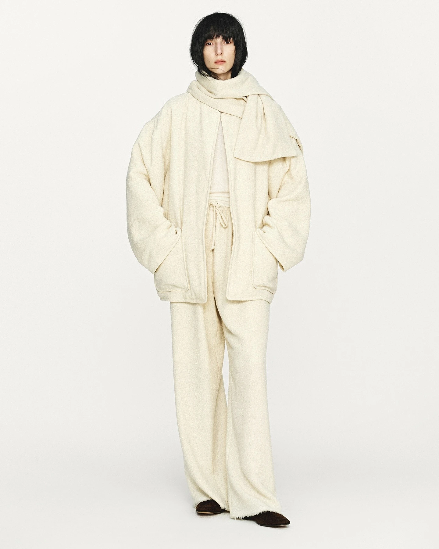 INTO THE EAST Ivory textured wool scarf cotton jacket
