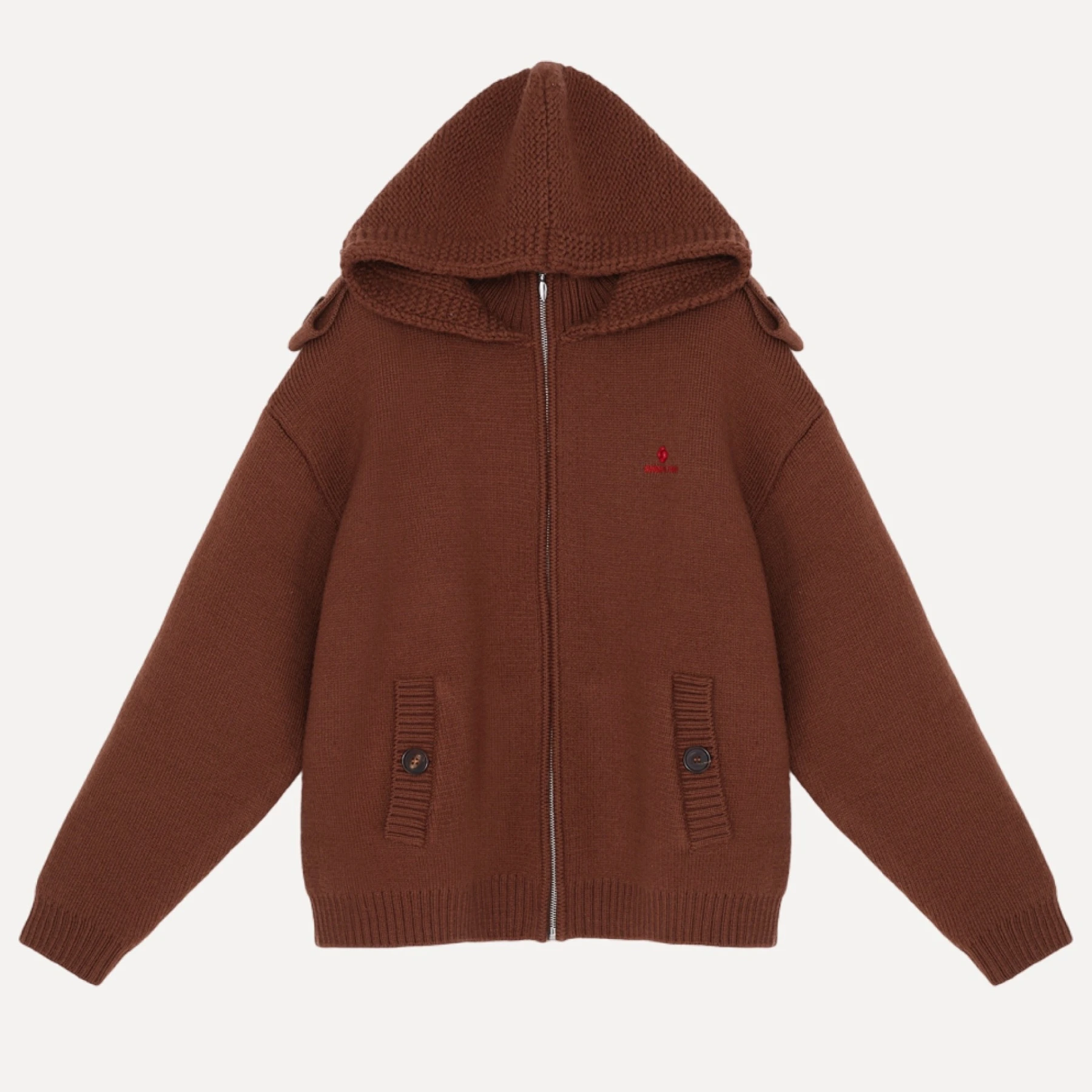SHUSHU/TONG Double Collar Zip-Up Knit Jacket
