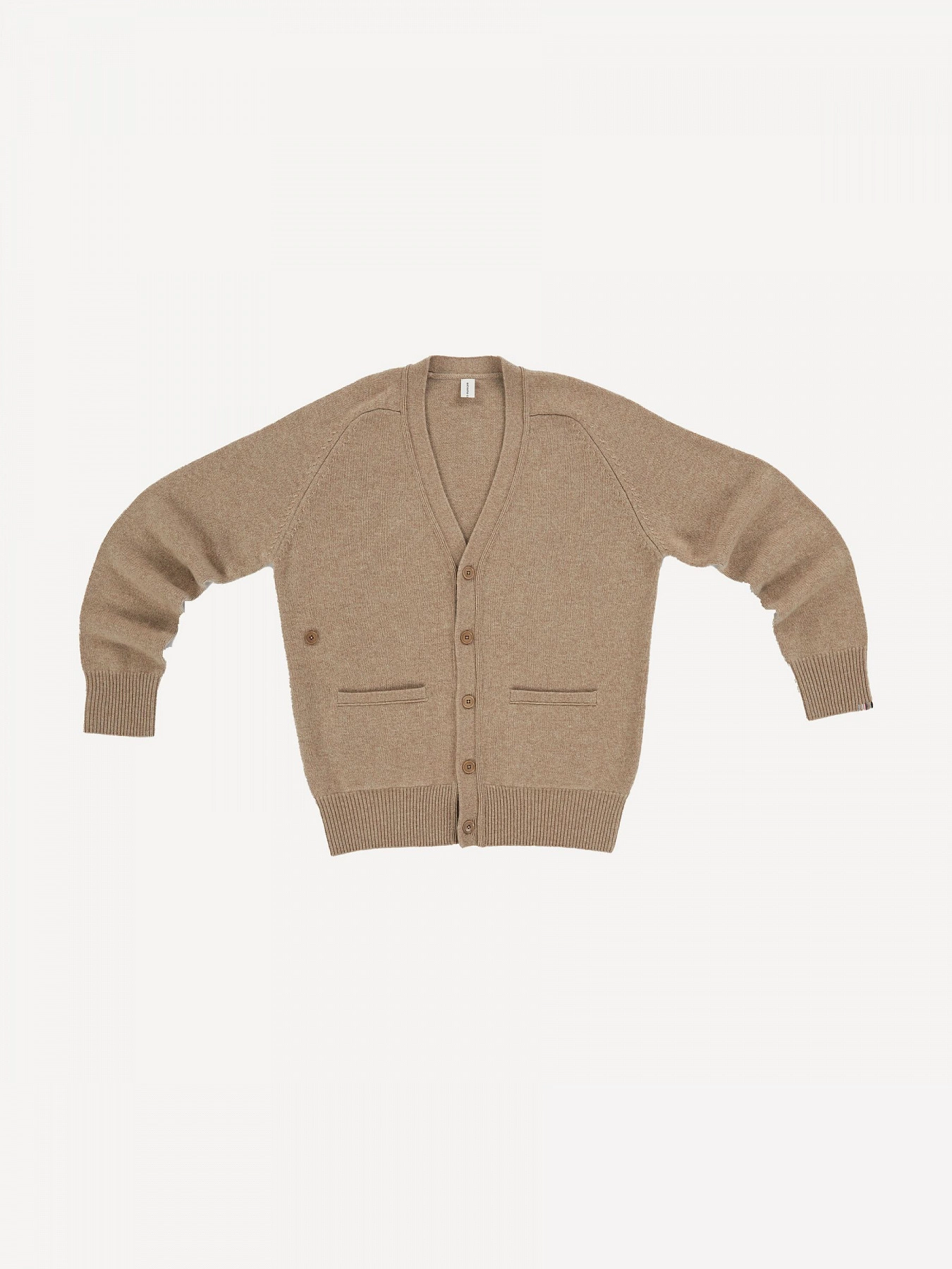 This classic cashmere v-neck cardigan is the perfect grandfather style with its comfort fit. The heavy-knit 'papilli' has an extra button on the side, which allows you to play with the fit of the cardigan. The cuffs and hem are rib knitted. Suitable for xs – xl bodies. Unisex.