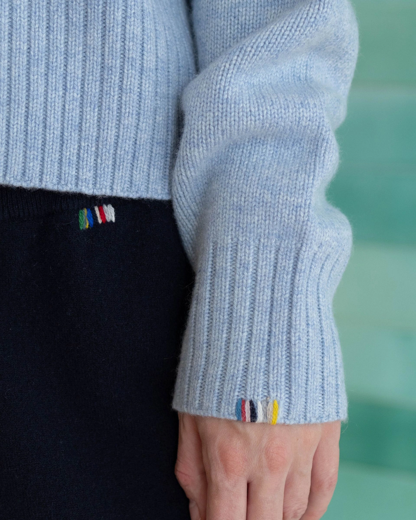 The Extreme Cashmere brand was founded by Saskia Dijkstra in 2016. With over two decades of experience in cashmere production, Saskia dreamed of creating a cashmere sweater that matched her vision. She decided to refuse to compromise on color and design, and to sacrifice quality for the sake of lowering the price. Extreme Cashmere does not follow the traditional fashion cycle, offering a permanent collection suitable for all seasons and occasions. The garments are gender and size-less, focusing on finding the perfect fit for everyone rather than sizes