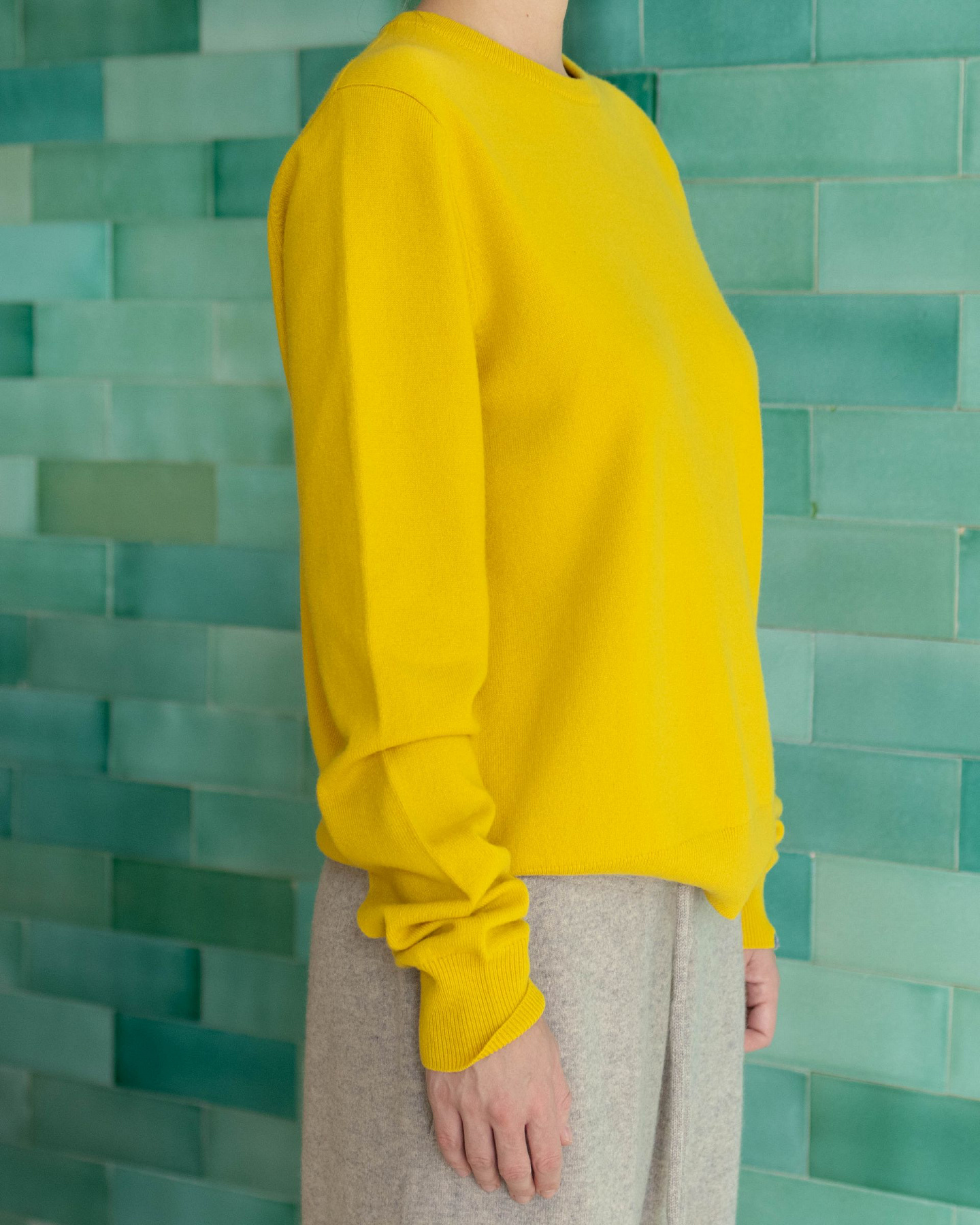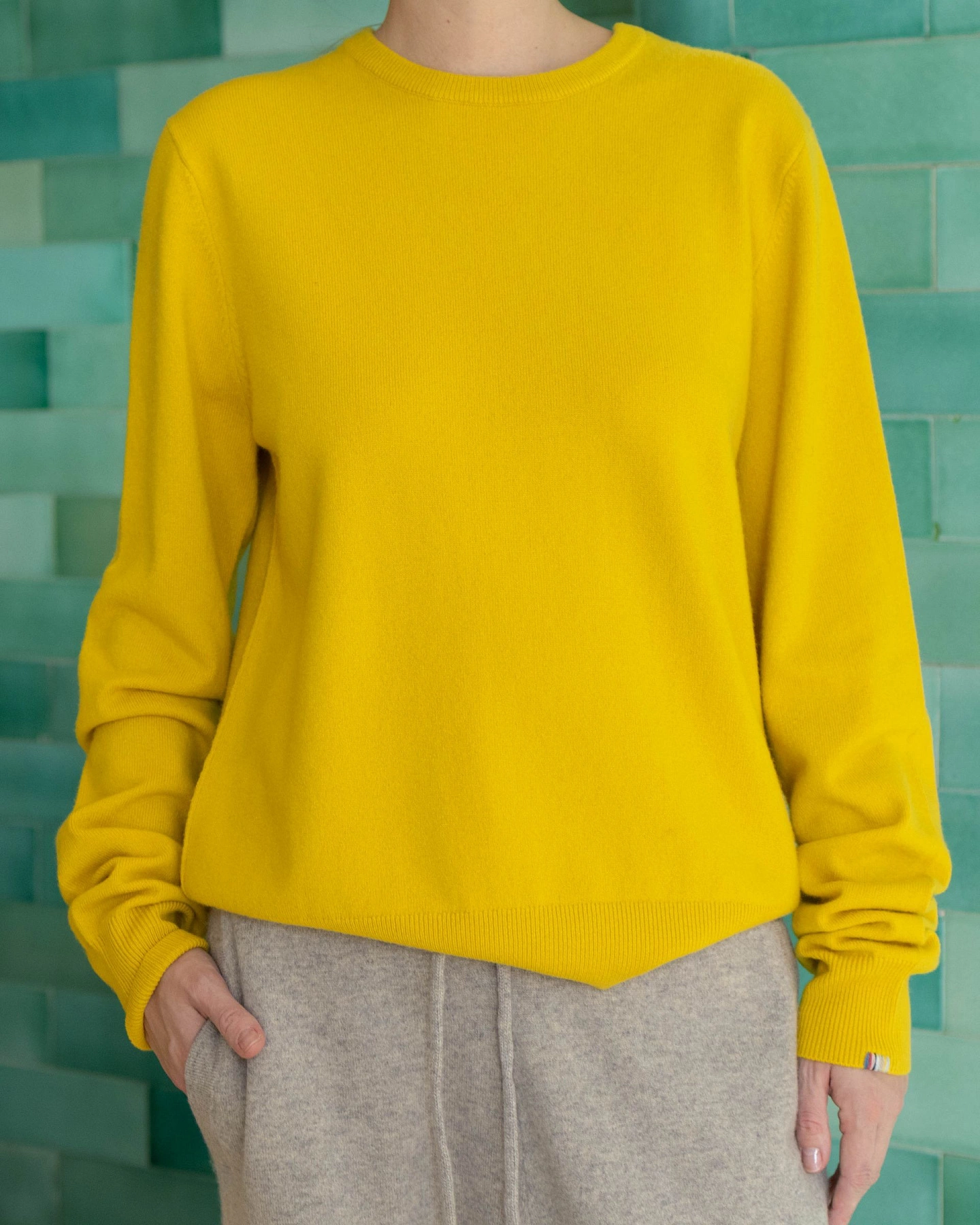 The Extreme Cashmere brand was founded by Saskia Dijkstra in 2016. With over two decades of experience in cashmere production, Saskia dreamed of creating a cashmere sweater that matched her vision. She decided to refuse to compromise on color and design, and to sacrifice quality for the sake of lowering the price. Extreme Cashmere does not follow the traditional fashion cycle, offering a permanent collection suitable for all seasons and occasions. The garments are gender and size-less, focusing on finding the perfect fit for everyone rather than sizes