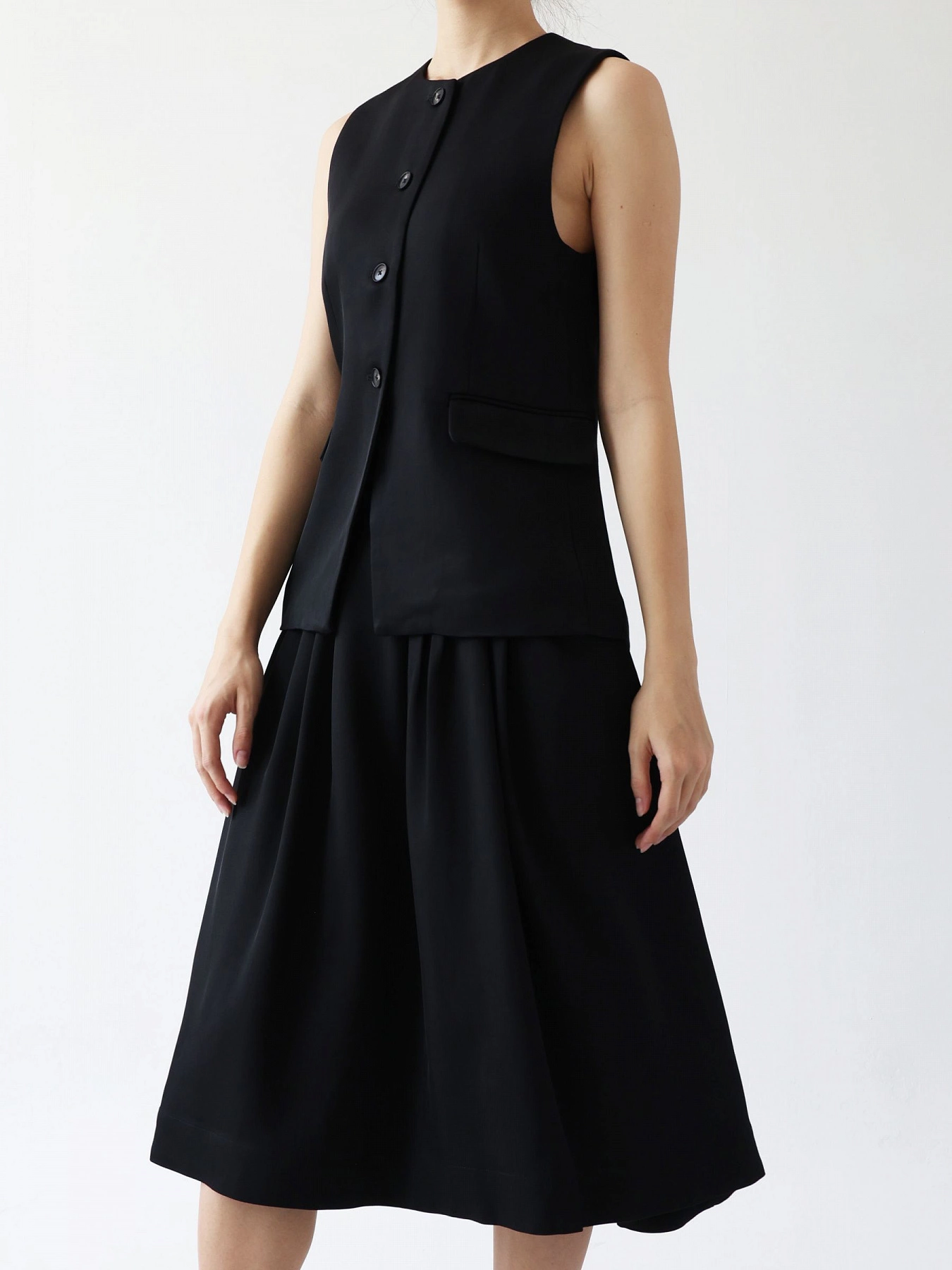 Viscose twill vest with Button closure and flap pockets. Central vent at back hem. Fitted silhouette.