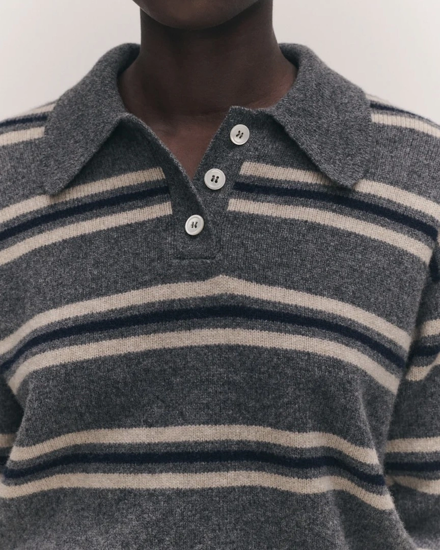 Edith Stripe Polo Shirt grey