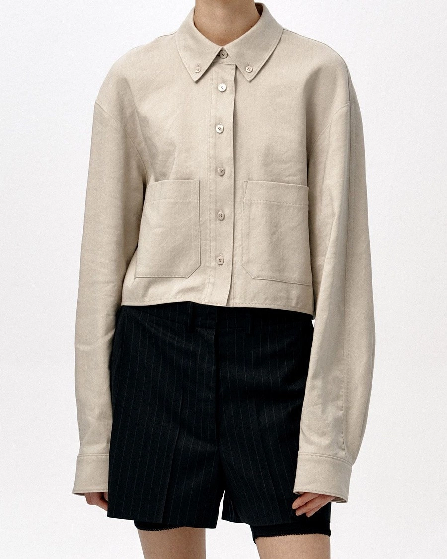LOW CLASSIC LINEN POCKET CROP SHIRT