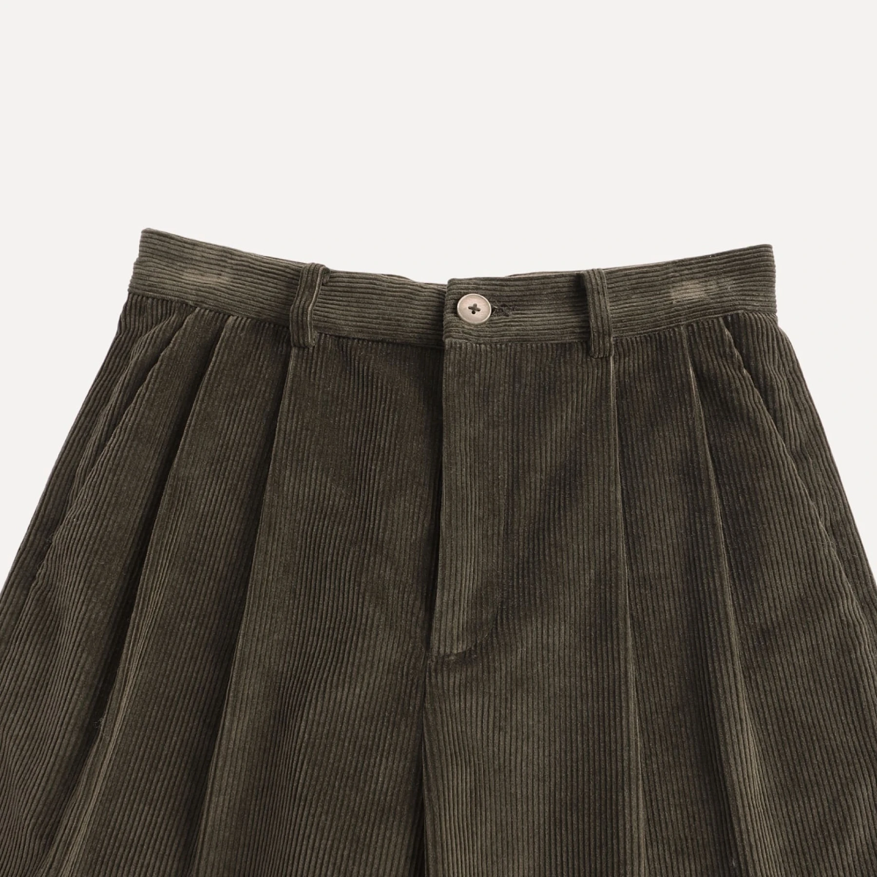 - Dark green corduroy Bermuda shorts