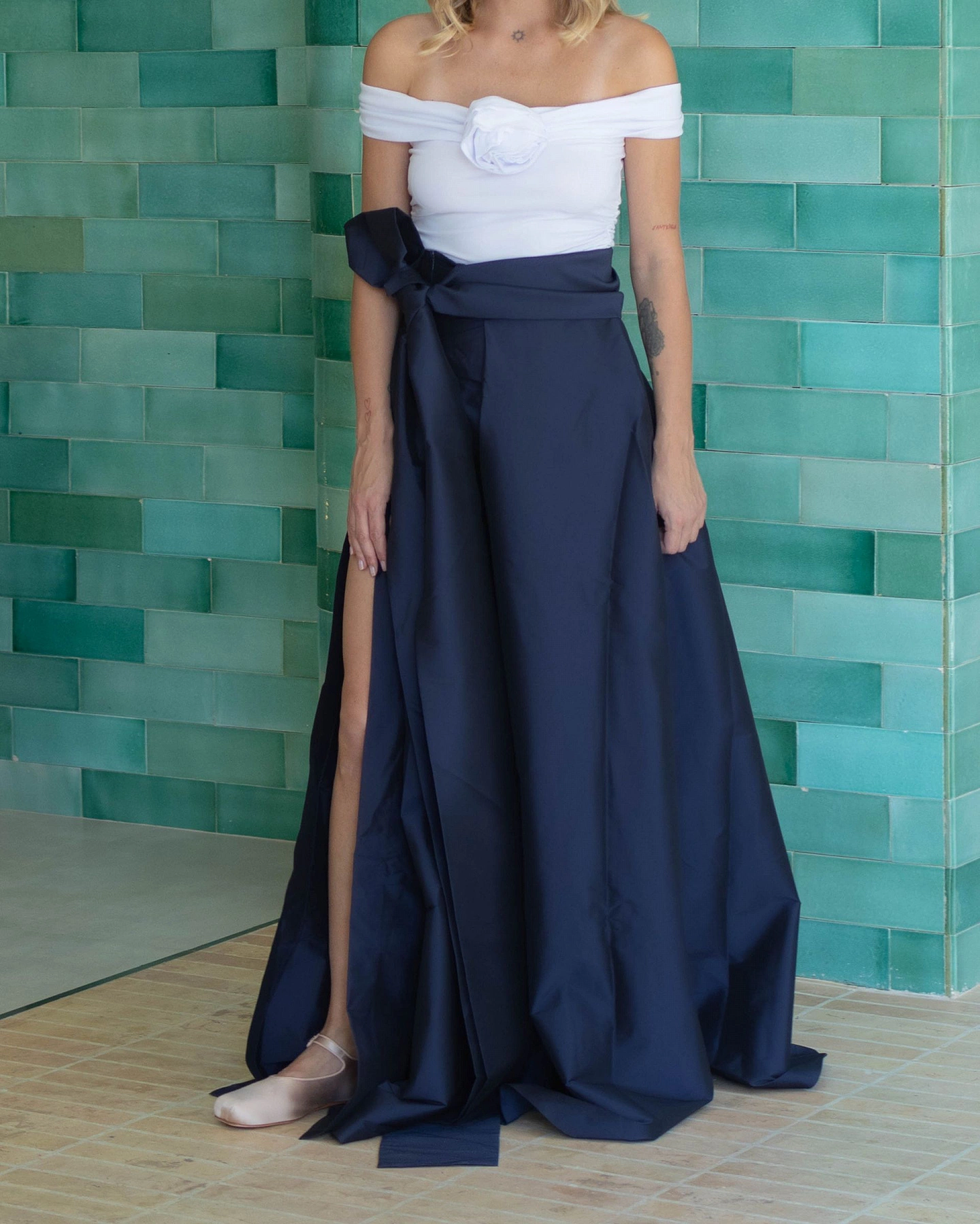 Skirt Beatrice is long elegant and voluminous skirt is a true eye-catcher, crafted out of BERNADETTE's signature taffeta fabric. Beatrice features a split, finished with a bow at the waist. Combine this skirt with the Marcel top, you can't go wrong either way.