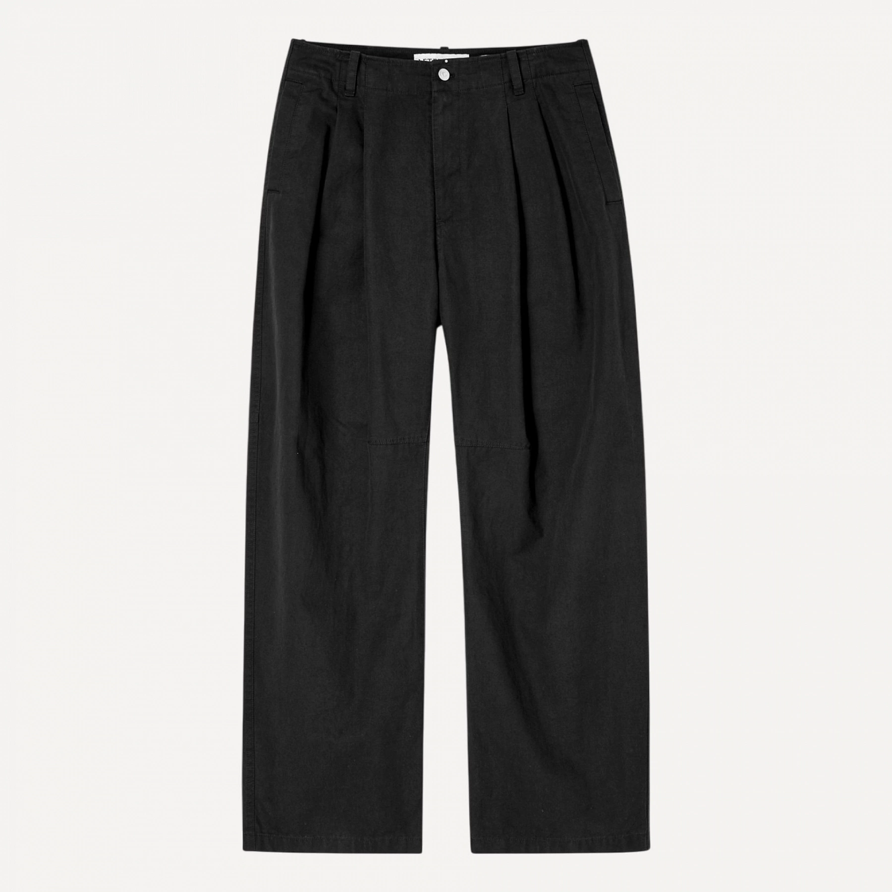 AFTER PRAY CURVED TWO TUCK COTTON PANTS BLACK