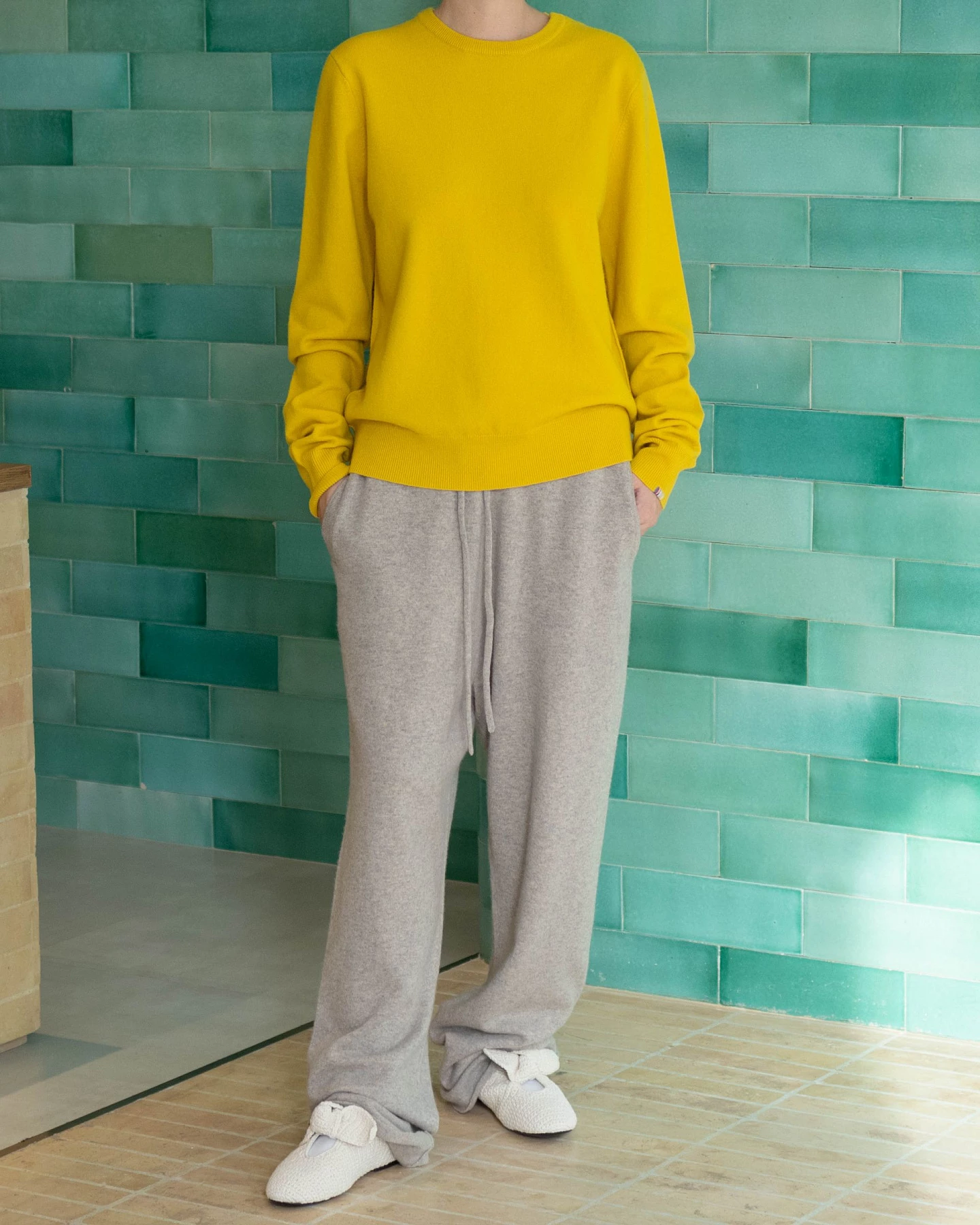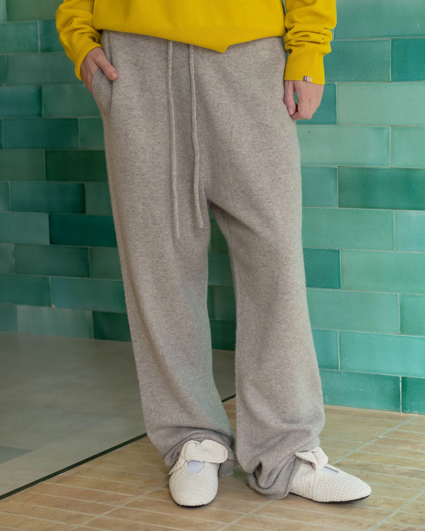 The N°142 Run pants are the most luxury version of lounge pants extreme cashmere could think of. Knitted from a super soft cashmere blend yarn, enriched with elastane for ultimate shape retention. The comfy, elasticated drawstring waistband, the extra-long straight legs: there is nothing that limits your freedom of movement. Luxury comfort for indoors, gorgeous enough for outdoors. Suitable for xs – l bodies. Unisex.