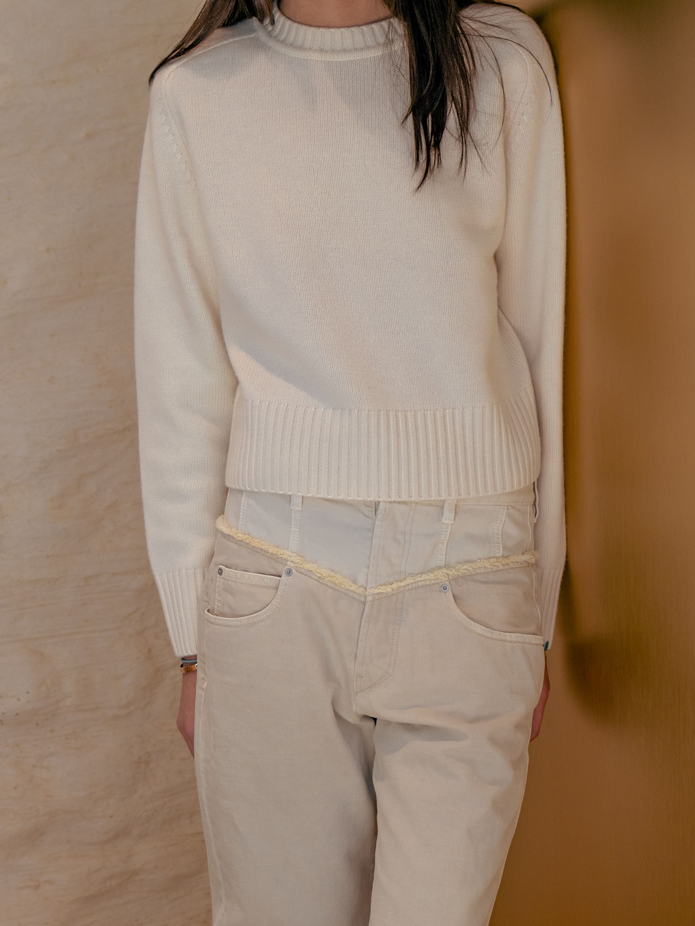 This classic cropped crew-neck cashmere sweater in heavy knit with a saddle sleeve is perfect for any occasion. Suitable for xs – m bodies.