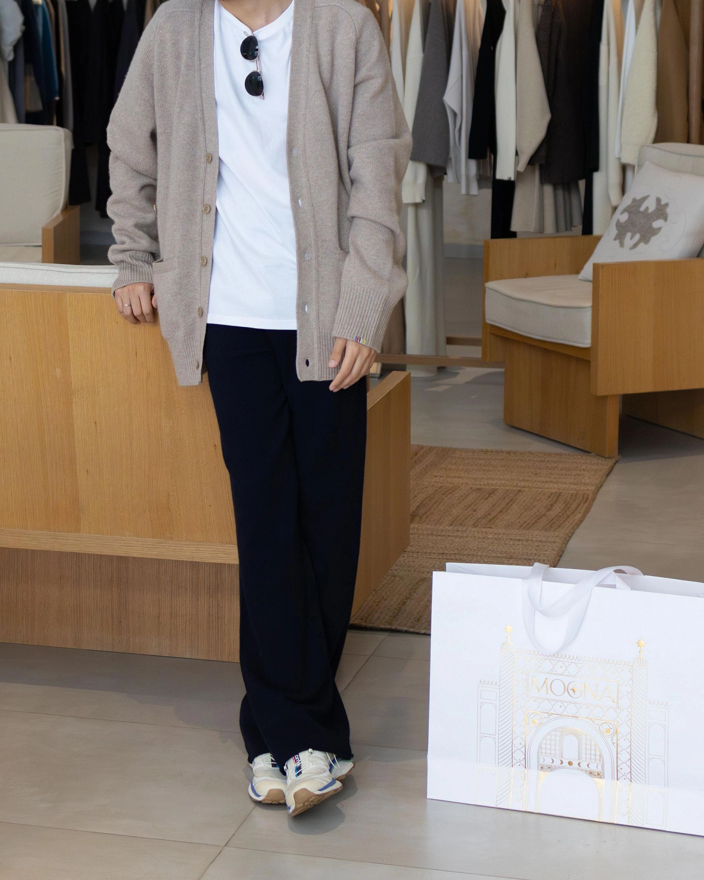 The Extreme Cashmere brand was founded by Saskia Dijkstra in 2016. With over two decades of experience in cashmere production, Saskia dreamed of creating a cashmere sweater that matched her vision. She decided to refuse to compromise on color and design, and to sacrifice quality for the sake of lowering the price. Extreme Cashmere does not follow the traditional fashion cycle, offering a permanent collection suitable for all seasons and occasions. The garments are gender and size-less, focusing on finding the perfect fit for everyone rather than sizes