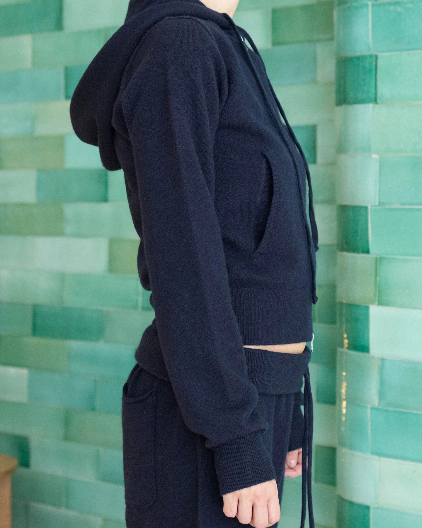 Super comfortable short zip-up cardigan with side pockets and a drawstring hoodie. Suitable for xs – m bodies.