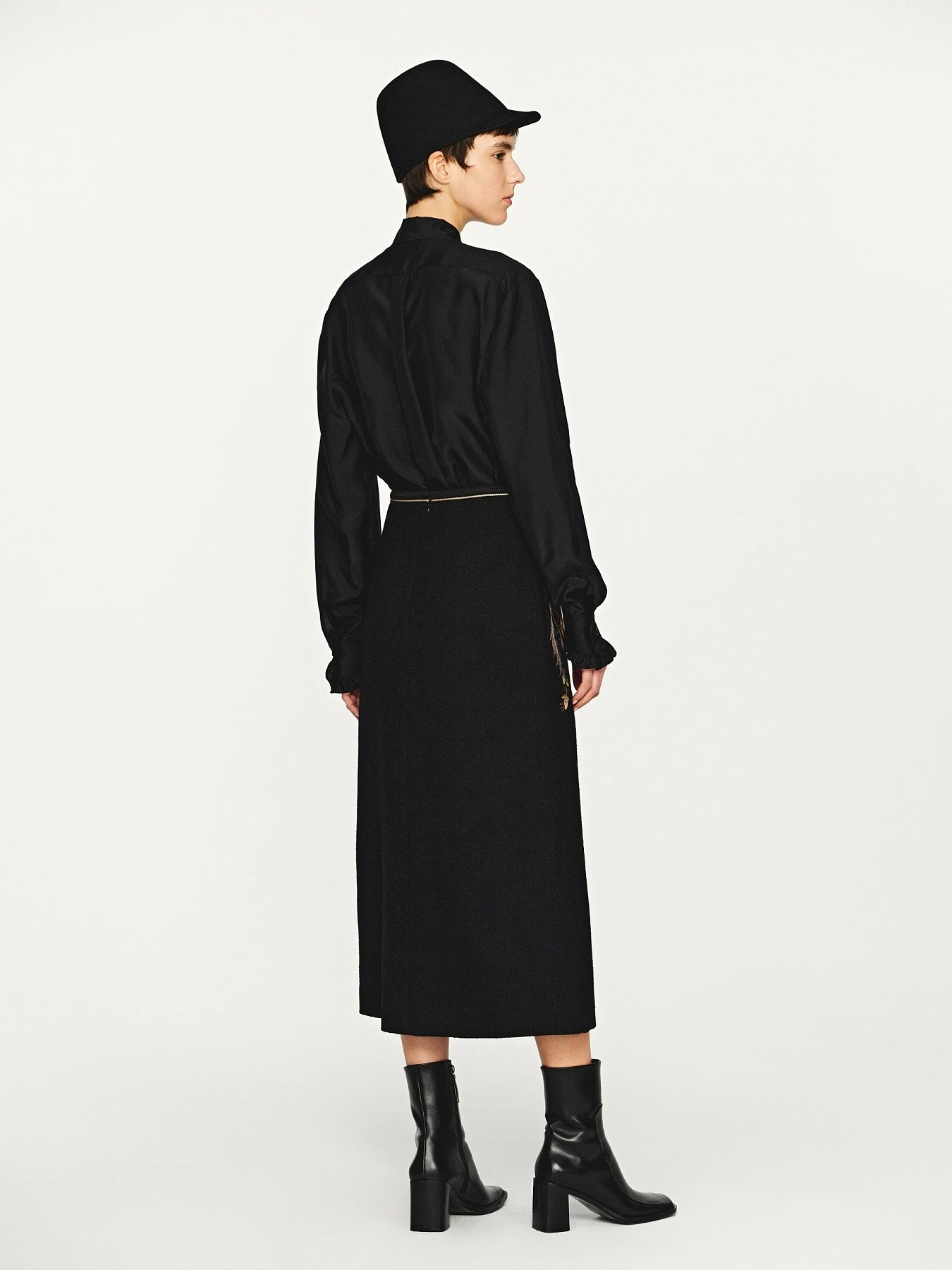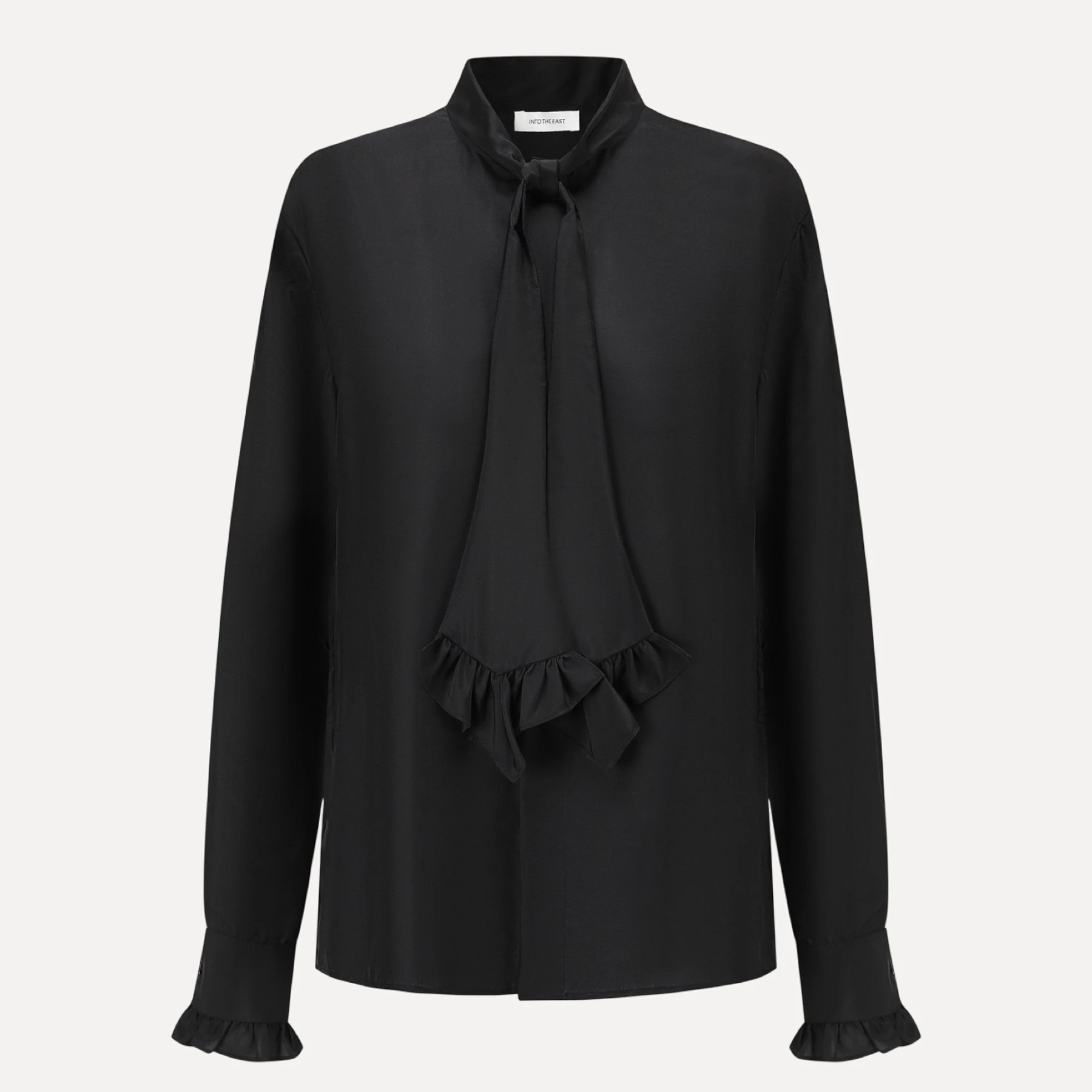 INTO THE EAST Black lace tie silk shirt