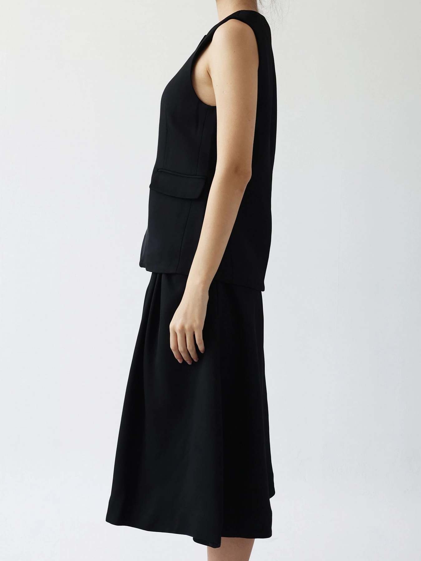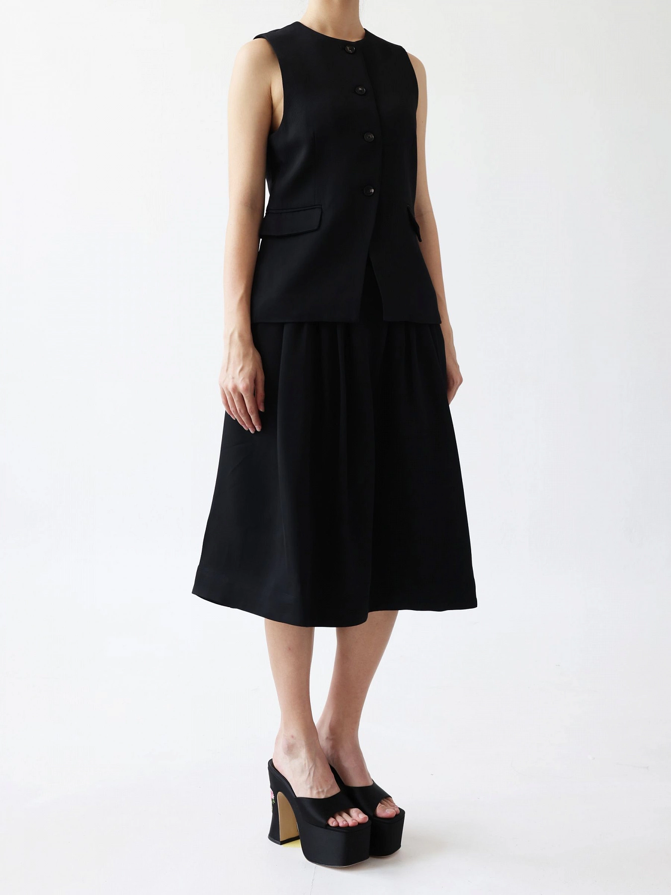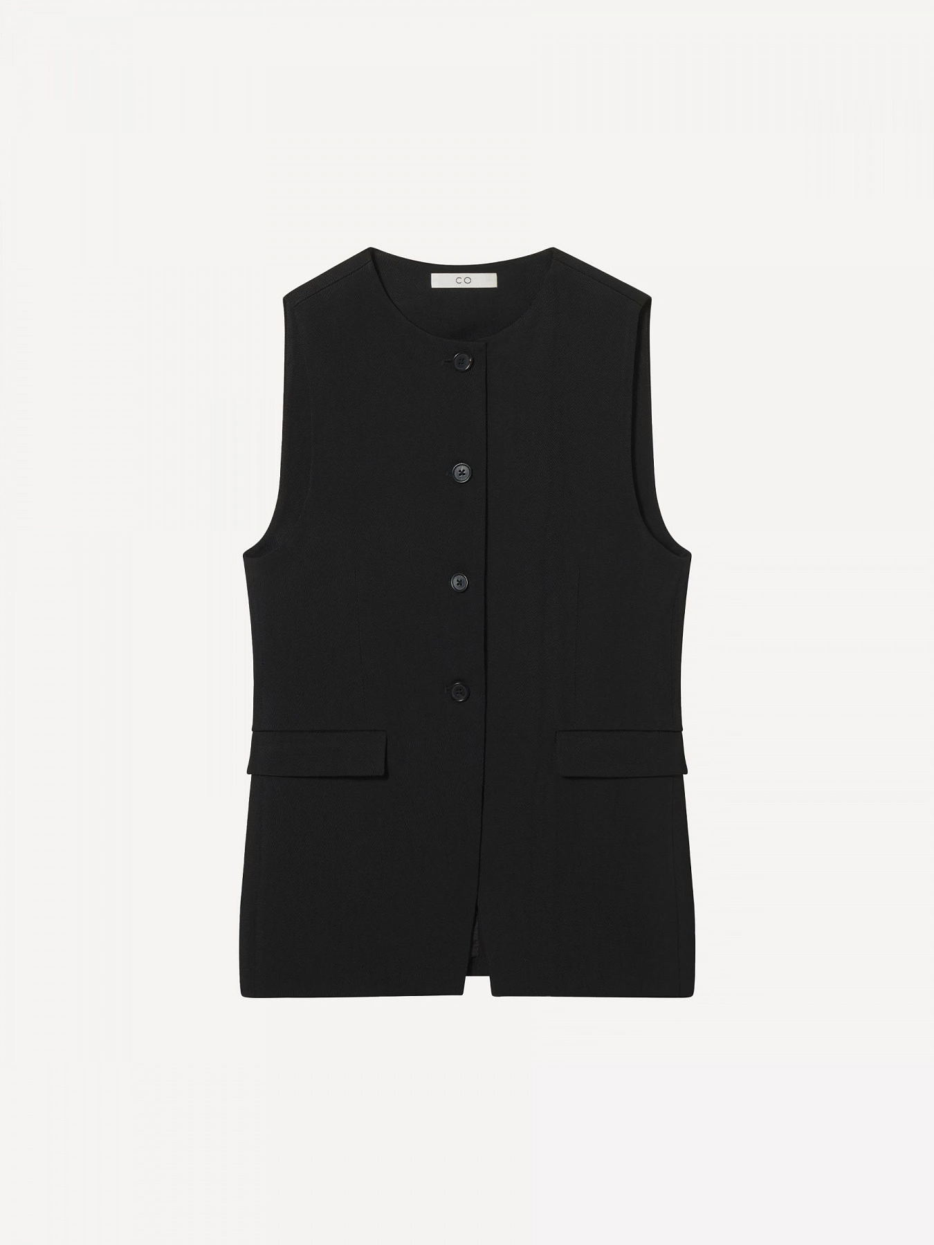 Viscose twill vest with Button closure and flap pockets. Central vent at back hem. Fitted silhouette.