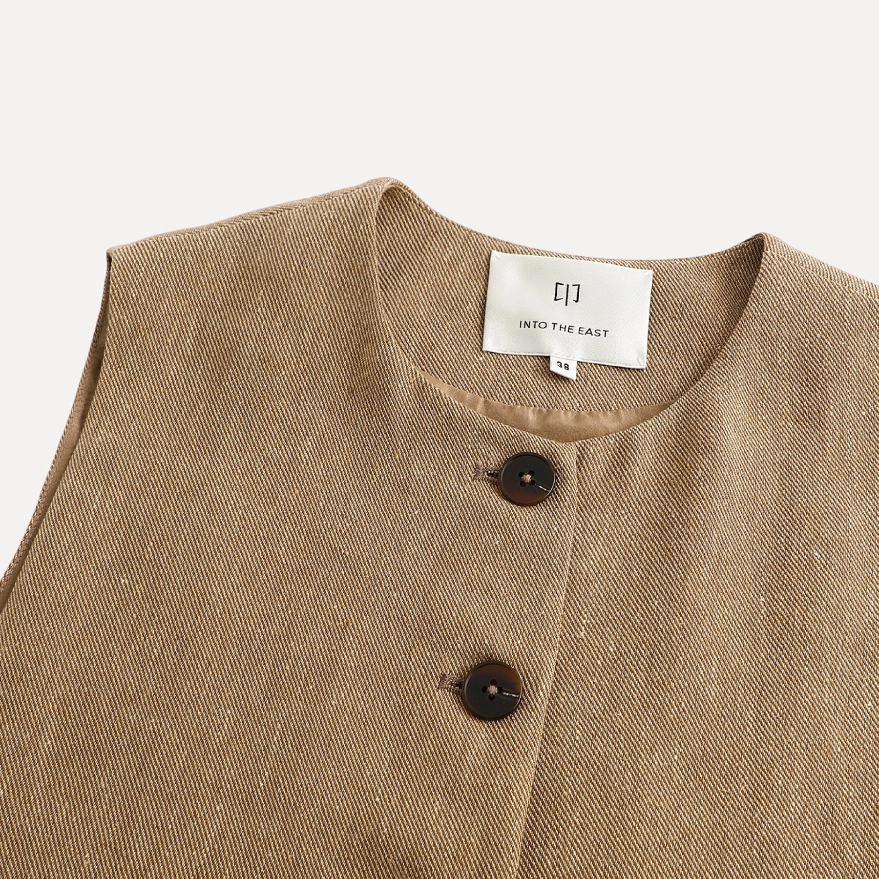 INTO THE EAST Linen Interwoven Round Neck Vest