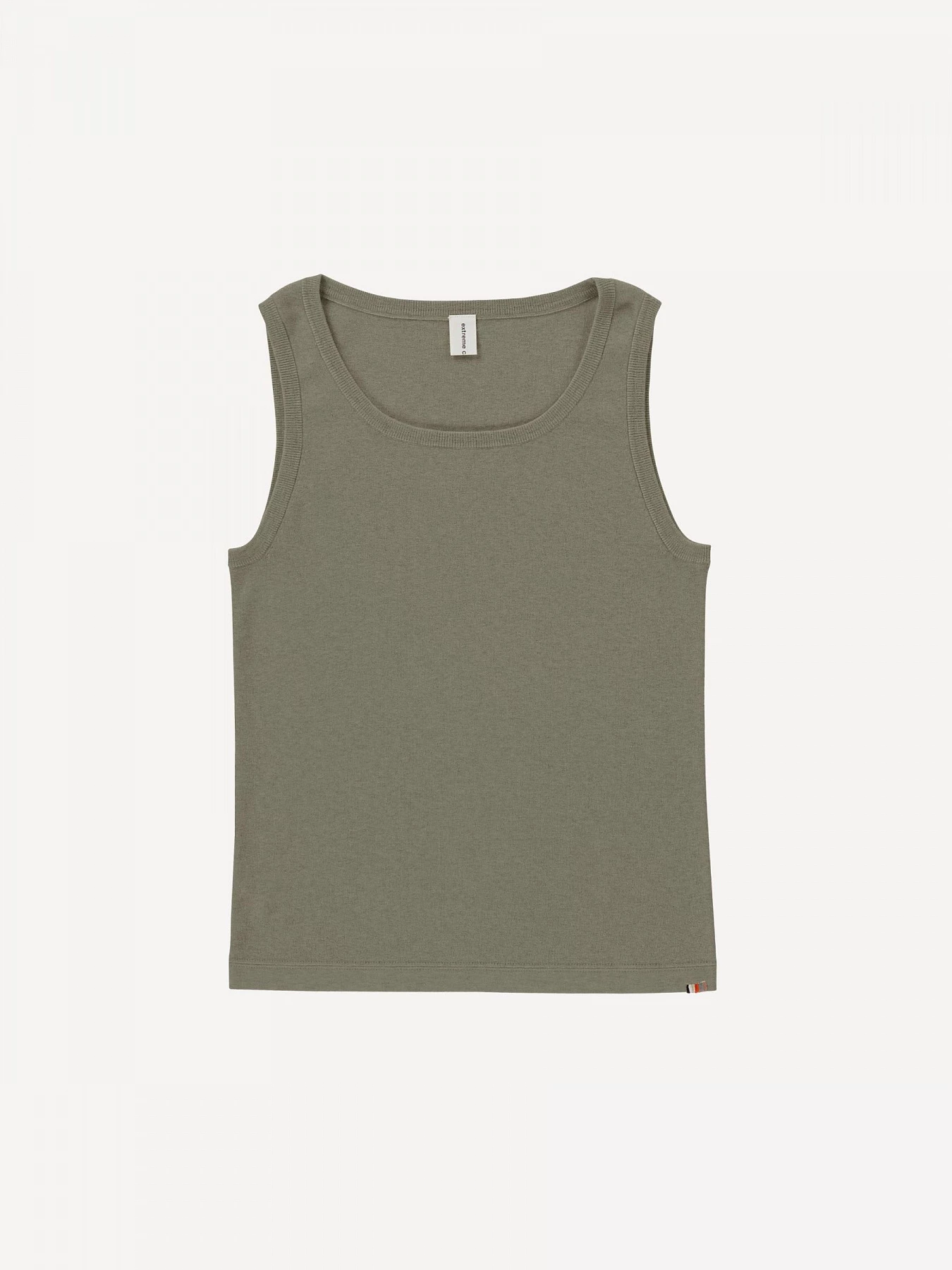 Minimalist ribbed tank top with a wide round neckline. Suitable for xs – l bodies. Unisex.