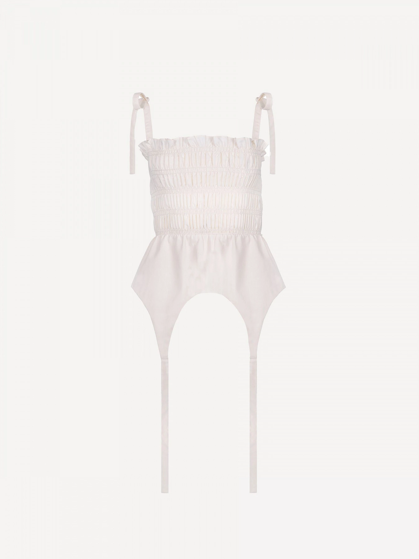 Sandy Liang is a young American brand founded by designer Sandy Liang in 2014. The brand is known for its playful approach to style, combining elements of street fashion and haute couture. Sandy Liang was born and raised in New York City and often draws inspiration from her surroundings, including her Chinese roots as well as personal memories