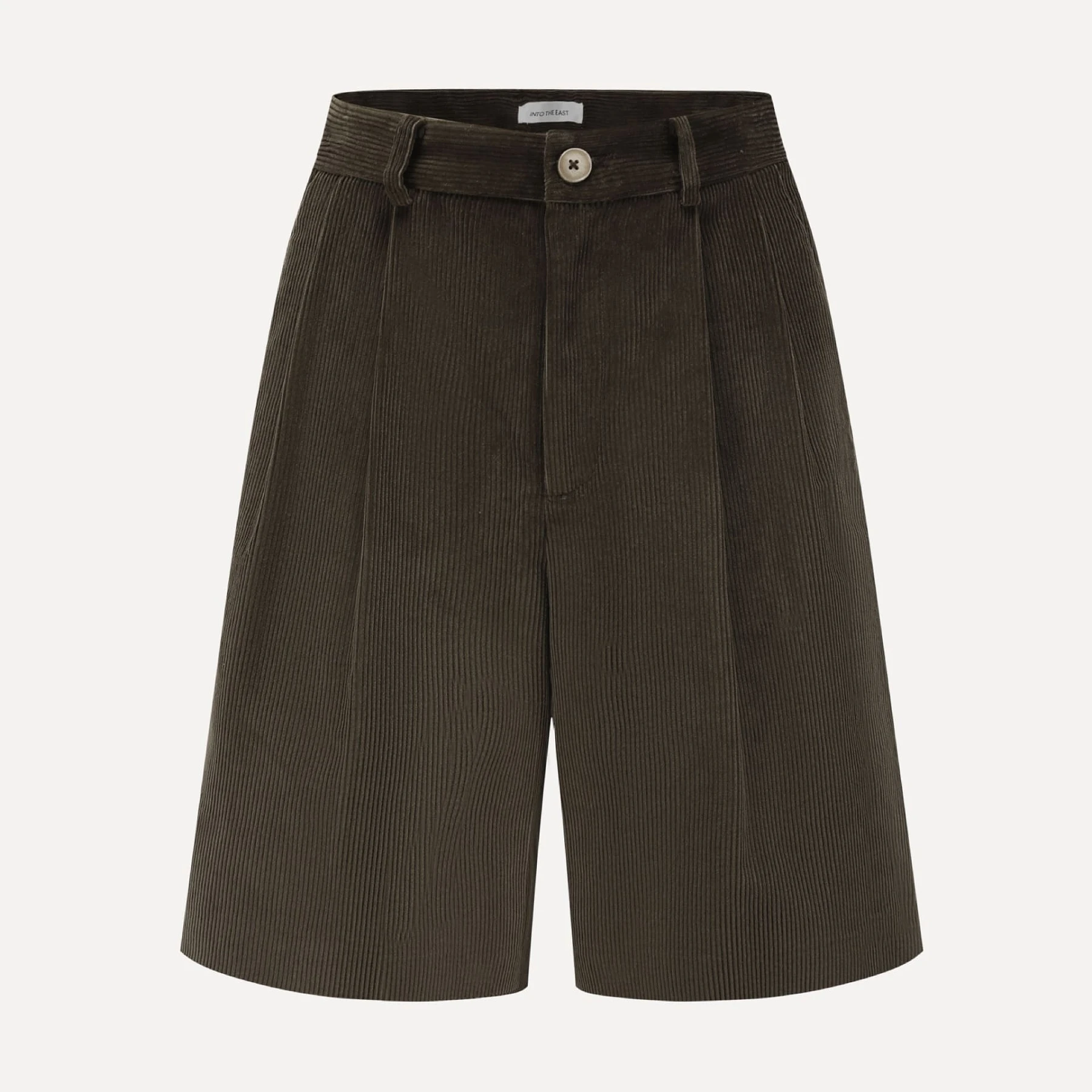 - Dark green corduroy Bermuda shorts